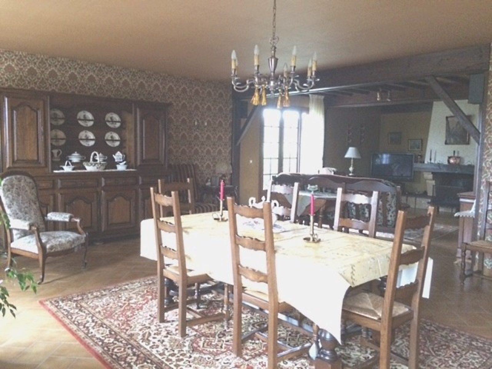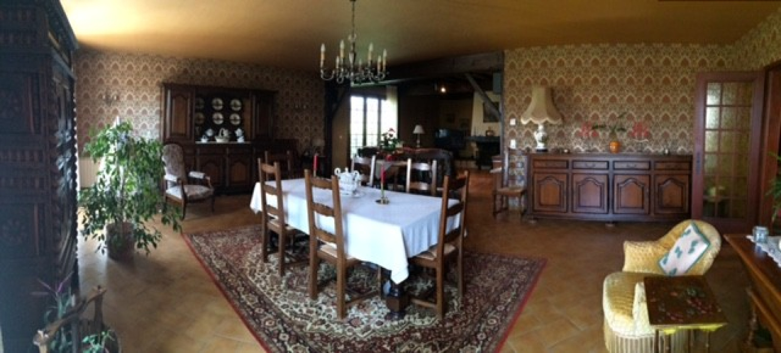 Grand maison, grande pièce à vivre avec cheminée. Une cuisine équipée, Quatre chambres dont une au rez-de-chaussée. Une salle d eau, une salle de bains. Une grande salle de jeux. Un sous-Sol avec garage, cellier.