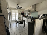 En EXCLUSIVITE Au calme. Maison de plain-pied comprenant une entrée, une cuisine équipée de 10,60m2 ouverte sur un salon/séjour 26,5m2, trois chambres de 10,39m2 12,65m2, 11,72m2. Un WC indépendant, une salle d'eau. Attenant un garage, un atelier, deux terrasses dont une couverte. jardin clos de 810m2.